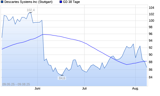 Mit dem Rücksetzer auf 87,40 EUR hat die Descartes Systems-Aktie am 08.08.2025 die 38-Tage-Linie nach unten gekreuzt.