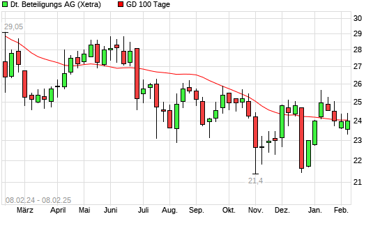 Mit dem Anstieg auf 24,00 EUR hat die Deutsche Beteiligungs-Aktie am 07.02.2025 die 100-Tage-Linie nach oben gekreuzt.