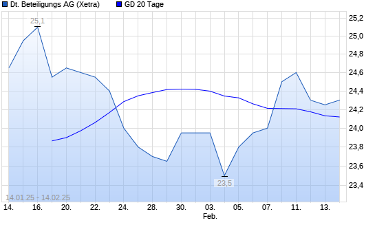 Mit dem Anstieg auf 24,25 EUR hat die Deutsche Beteiligungs-Aktie am 13.02.2025 die 20-Tage-Linie nach oben gekreuzt.
