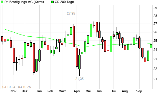 Mit dem Rücksetzer auf 24,60 EUR hat die Deutsche Beteiligungs-Aktie am 02.10.2025 die 200-Tage-Linie nach unten gekreuzt.