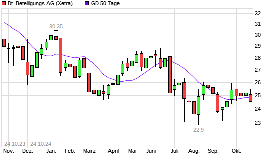 Mit dem Rücksetzer auf 24,75 EUR hat die Deutsche Beteiligungs-Aktie am 23.10.2024 die 50-Tage-Linie nach unten gekreuzt.