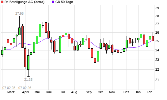 Mit dem Rücksetzer auf 25,05 EUR hat die Deutsche Beteiligungs-Aktie am 06.02.2026 die 50-Tage-Linie nach unten gekreuzt.
