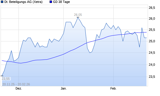 Mit dem Anstieg auf 25,45 EUR hat die Deutsche Beteiligungs-Aktie am 19.02.2026 die 38-Tage-Linie nach oben gekreuzt.Die Deutsche Beteiligungs-Aktie befindet sich seit dem 21.01.2026 ...weiterlesen