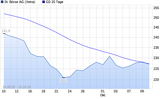 Mit dem Anstieg auf 228,70 EUR hat die Deutsche Börse-Aktie am 09.10.2025 die 20-Tage-Linie nach oben gekreuzt.