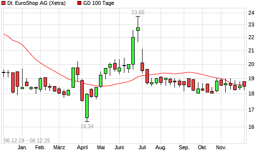 Mit dem Anstieg auf 18,66 EUR hat die Deutsche EuroShop-Aktie am 05.12.2025 die 100-Tage-Linie nach oben gekreuzt.