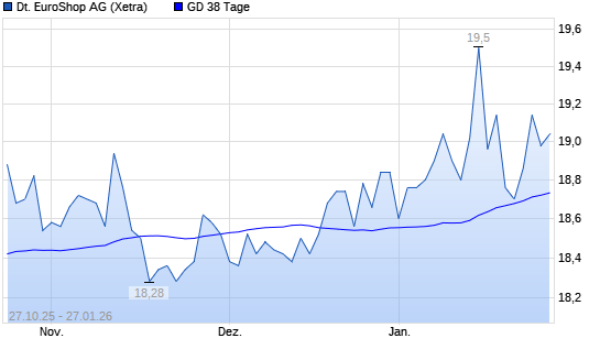 Mit dem Anstieg auf 18,78 EUR hat die Deutsche EuroShop-Aktie am 26.01.2026 die 38-Tage-Linie nach oben gekreuzt.