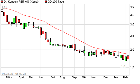 Mit dem Anstieg auf 1,79 EUR hat die Deutsche Konsum REIT-Aktie am 04.02.2026 die 100-Tage-Linie nach oben gekreuzt.