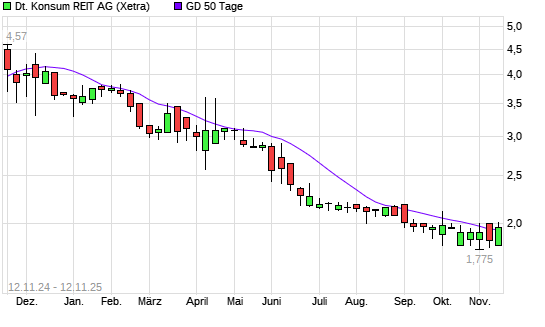 Mit dem Anstieg auf 1,90 EUR hat die Deutsche Konsum REIT-Aktie am 11.11.2025 die 50-Tage-Linie nach oben gekreuzt.