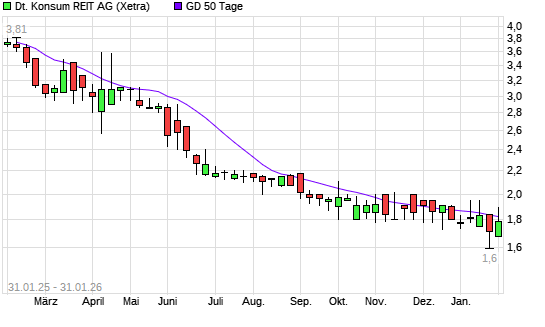 Mit dem Anstieg auf 1,75 EUR hat die Deutsche Konsum REIT-Aktie am 30.01.2026 die 50-Tage-Linie nach oben gekreuzt.