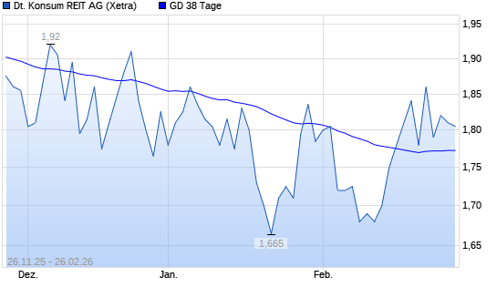 Mit dem Rücksetzer auf 1,64 EUR hat die Deutsche Konsum REIT-Aktie am 25.02.2026 die 38-Tage-Linie nach unten gekreuzt.