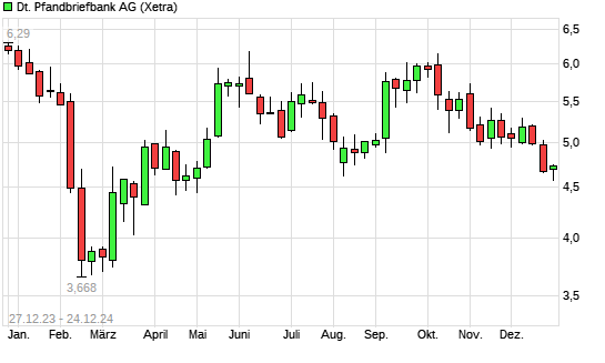 Mit dem Rücksetzer auf 4,67 EUR hat die Deutsche Pfandbriefbank-Aktie (ISIN DE0008019001) am 23.12.2024 ein neues 6-Monats-Tief erreicht und damit den Kurs vom 20.12.2024 eingestellt.