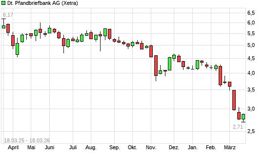 Mit dem Rücksetzer auf 2,76 EUR hat die Deutsche Pfandbriefbank-Aktie (ISIN DE0008019001) am 17.03.2026 ein neues All-Time-Low erreicht und damit den Kurs vom 13.03.2026 eingestellt.