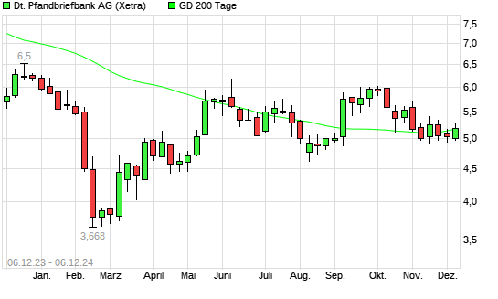 Mit dem Anstieg auf 5,26 EUR hat die Deutsche Pfandbriefbank-Aktie am 05.12.2024 die 200-Tage-Linie nach oben gekreuzt.