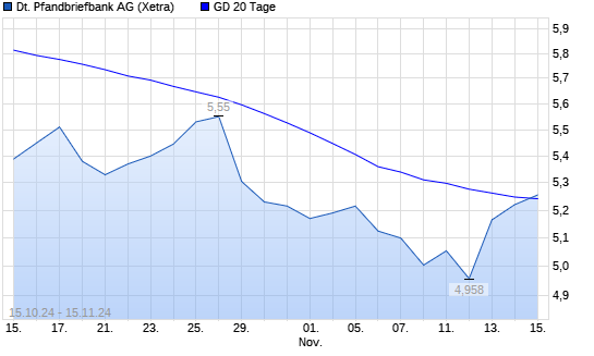 Mit dem Rücksetzer auf 5,22 EUR hat die Deutsche Pfandbriefbank-Aktie am 14.11.2024 die 20-Tage-Linie nach unten gekreuzt.
