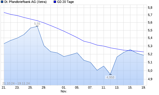 Mit dem Rücksetzer auf 5,25 EUR hat die Deutsche Pfandbriefbank-Aktie am 18.11.2024 die 20-Tage-Linie nach unten gekreuzt.