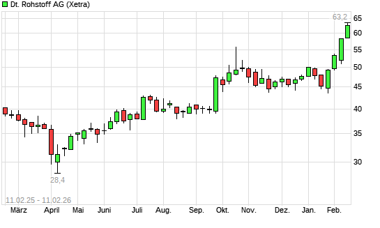 Mit dem Anstieg auf 61,70 EUR hat die Deutsche Rohstoff-Aktie (ISIN DE000A0XYG76) am 10.02.2026 ein neues All-Time-High erreicht und damit den Kurs vom 09.02.2026 eingestellt.