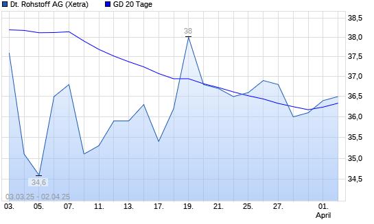 Mit dem Anstieg auf 36,40 EUR hat die Deutsche Rohstoff-Aktie am 01.04.2025 die 20-Tage-Linie nach oben gekreuzt.