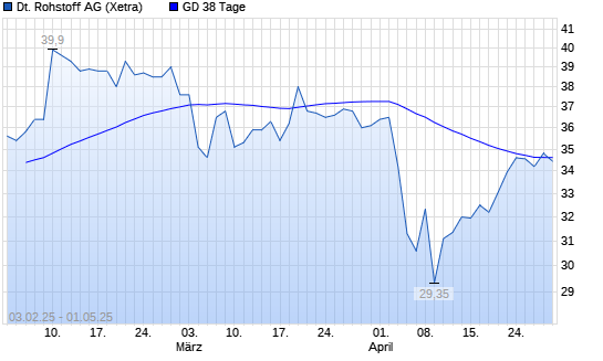 Mit dem Anstieg auf 34,60 EUR hat die Deutsche Rohstoff-Aktie am 30.04.2025 die 38-Tage-Linie nach oben gekreuzt.