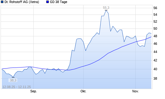Mit dem Anstieg auf 47,70 EUR hat die Deutsche Rohstoff-Aktie am 11.11.2025 die 38-Tage-Linie nach oben gekreuzt.