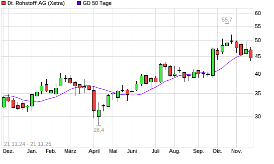 Mit dem Anstieg auf 46,50 EUR hat die Deutsche Rohstoff-Aktie am 20.11.2025 die 50-Tage-Linie nach oben gekreuzt.