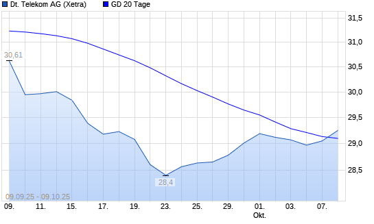 Mit dem Anstieg auf 29,26 EUR hat die Deutsche Telekom-Aktie am 08.10.2025 die 20-Tage-Linie nach oben gekreuzt.