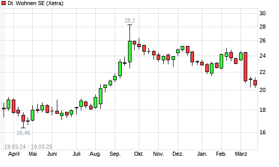 Mit dem Rücksetzer auf 20,55 EUR hat die Deutsche Wohnen-Aktie (ISIN DE000A0HN5C6) am 18.03.2025 ein neues 6-Monats-Tief erreicht und damit den Kurs vom 11.03.2025 eingestellt.