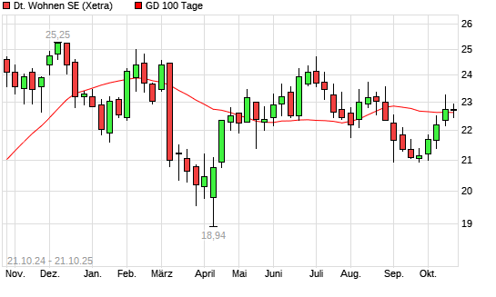 Mit dem Rücksetzer auf 22,45 EUR hat die Deutsche Wohnen-Aktie am 20.10.2025 die 100-Tage-Linie nach unten gekreuzt.