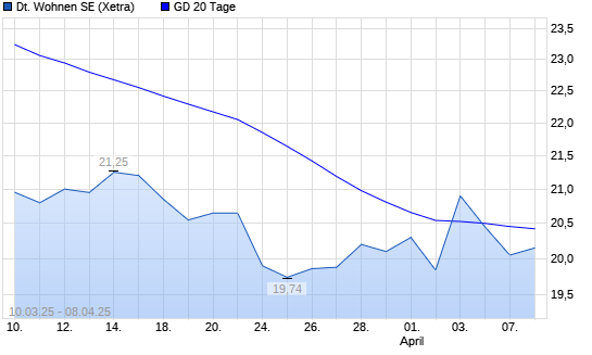 Mit dem Rücksetzer auf 19,00 EUR hat die Deutsche Wohnen-Aktie am 07.04.2025 die 20-Tage-Linie nach unten gekreuzt.