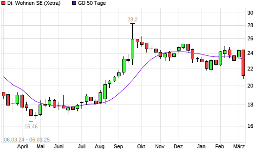 Mit dem Rücksetzer auf 22,20 EUR hat die Deutsche Wohnen-Aktie am 05.03.2025 die 50-Tage-Linie nach unten gekreuzt.