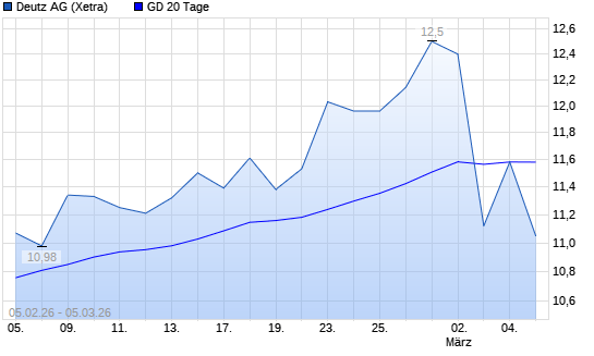 Mit dem Anstieg auf 11,62 EUR hat die Deutz-Aktie am 04.03.2026 die 20-Tage-Linie nach oben gekreuzt.