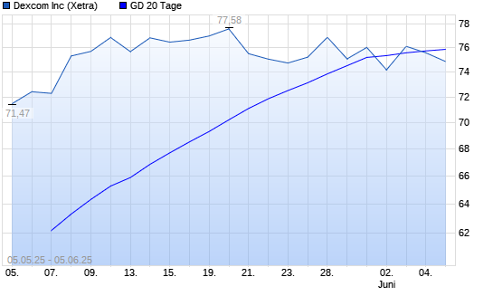 Mit dem Anstieg auf 76,01 EUR hat die Dexcom-Aktie am 04.06.2025 die 20-Tage-Linie nach oben gekreuzt.