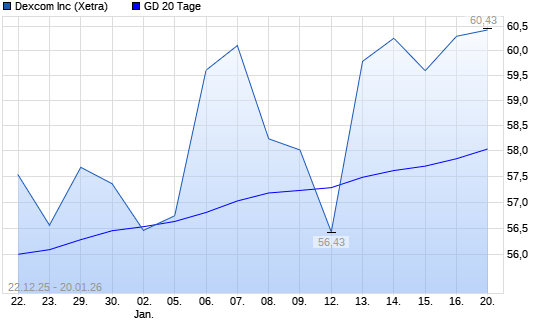 Mit dem Rücksetzer auf 58,20 EUR hat die Dexcom-Aktie am 19.01.2026 die 20-Tage-Linie nach unten gekreuzt.