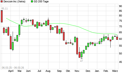Mit dem Rücksetzer auf 60,82 EUR hat die Dexcom-Aktie am 05.03.2026 die 200-Tage-Linie nach unten gekreuzt.
