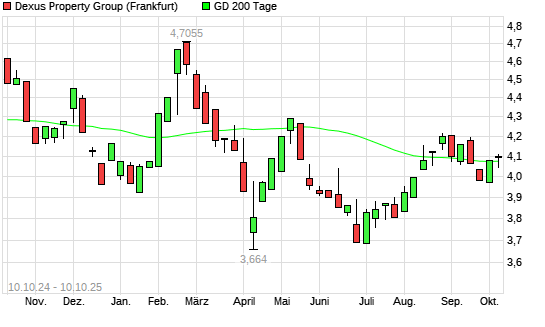 Mit dem Anstieg auf 4,09 EUR hat die Dexus Property Group-Aktie am 09.10.2025 die 200-Tage-Linie nach oben gekreuzt.