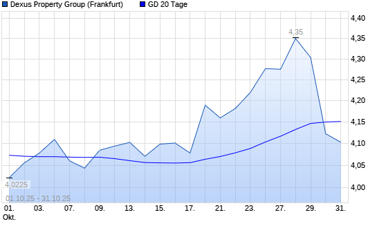 Mit dem Rücksetzer auf 4,12 EUR hat die Dexus Property Group-Aktie am 30.10.2025 die 20-Tage-Linie nach unten gekreuzt.
