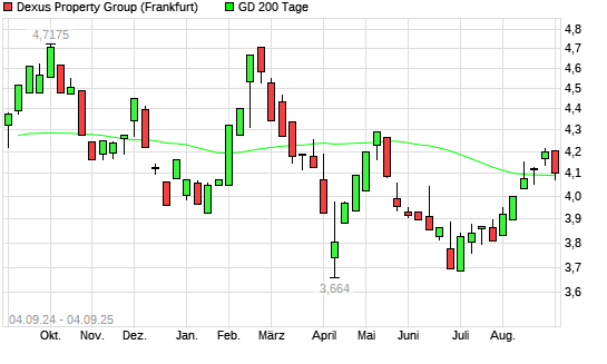 Mit dem Rücksetzer auf 4,07 EUR hat die Dexus Property Group-Aktie am 03.09.2025 die 200-Tage-Linie nach unten gekreuzt.