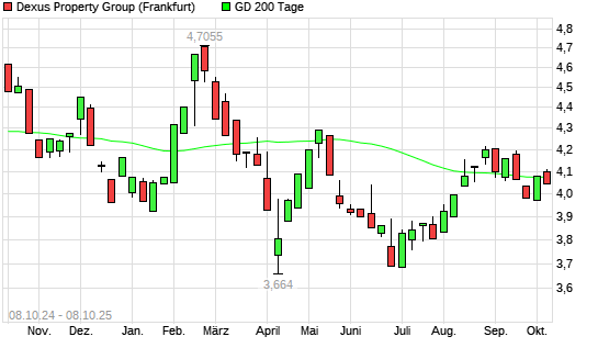 Mit dem Rücksetzer auf 4,06 EUR hat die Dexus Property Group-Aktie am 07.10.2025 die 200-Tage-Linie nach unten gekreuzt.