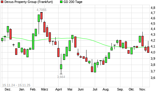 Mit dem Rücksetzer auf 4,00 EUR hat die Dexus Property Group-Aktie am 14.11.2025 die 200-Tage-Linie nach unten gekreuzt.Die Dexus Property Group-Aktie befand sich seit dem 10.11.2025 im ...weiterlesen