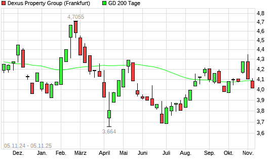 Mit dem Rücksetzer auf 4,03 EUR hat die Dexus Property Group-Aktie am 04.11.2025 die 200-Tage-Linie nach unten gekreuzt.Die Dexus Property Group-Aktie befand sich seit dem 15.10.2025 im ...weiterlesen