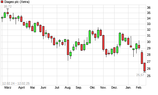 Mit dem Rücksetzer auf 26,35 EUR hat die Diageo-Aktie (ISIN GB0002374006) am 11.02.2025 ein neues 3-Jahres-Tief erreicht und damit den Kurs vom 10.02.2025 eingestellt.