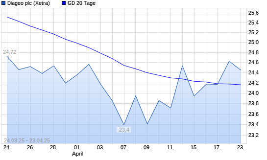 Mit dem Anstieg auf 24,67 EUR hat die Diageo-Aktie am 22.04.2025 die 20-Tage-Linie nach oben gekreuzt.
