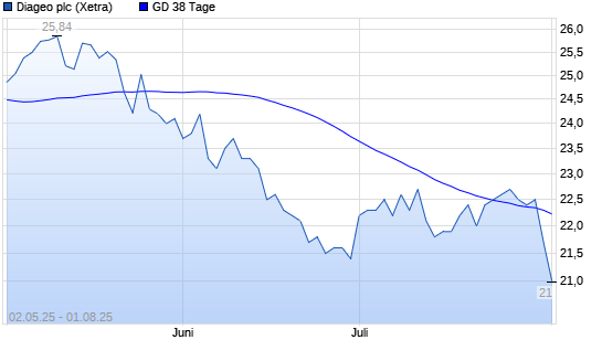 Mit dem Rücksetzer auf 21,70 EUR hat die Diageo-Aktie am 31.07.2025 die 38-Tage-Linie nach unten gekreuzt.