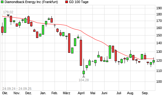 Mit dem Anstieg auf 123,48 EUR hat die Diamondback Energy-Aktie am 23.09.2025 die 100-Tage-Linie nach oben gekreuzt.
