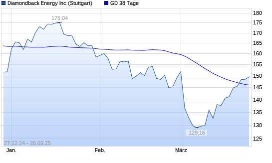 Mit dem Anstieg auf 149,52 EUR hat die Diamondback Energy-Aktie am 25.03.2025 die 38-Tage-Linie nach oben gekreuzt.