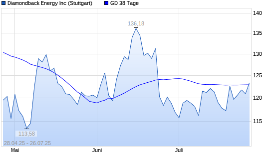 Mit dem Anstieg auf 123,32 EUR hat die Diamondback Energy-Aktie am 25.07.2025 die 38-Tage-Linie nach oben gekreuzt.