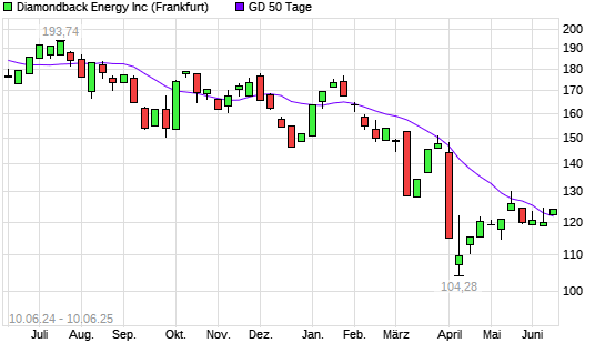 Mit dem Anstieg auf 122,40 EUR hat die Diamondback Energy-Aktie am 09.06.2025 die 50-Tage-Linie nach oben gekreuzt.
