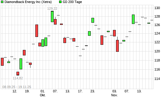 Mit dem Rücksetzer auf 125,30 EUR hat die Diamondback Energy-Aktie am 18.11.2025 die 200-Tage-Linie nach unten gekreuzt.