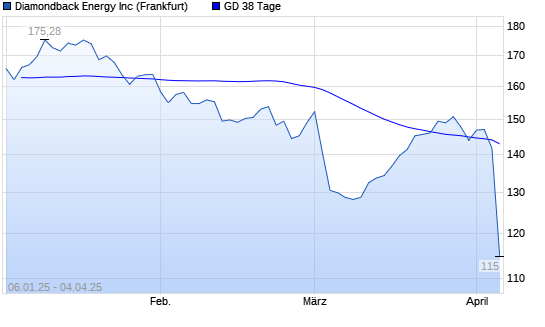 Mit dem Rücksetzer auf 141,78 EUR hat die Diamondback Energy-Aktie am 03.04.2025 die 38-Tage-Linie nach unten gekreuzt.