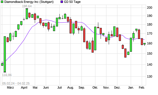 Mit dem Rücksetzer auf 158,46 EUR hat die Diamondback Energy-Aktie am 03.02.2025 die 50-Tage-Linie nach unten gekreuzt.