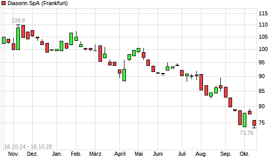 Mit dem Rücksetzer auf 74,28 EUR hat die Diasorin-Aktie (ISIN IT0003492391) am 15.10.2025 ein neues 5-Jahres-Tief erreicht und damit den Kurs vom 14.10.2025 eingestellt.